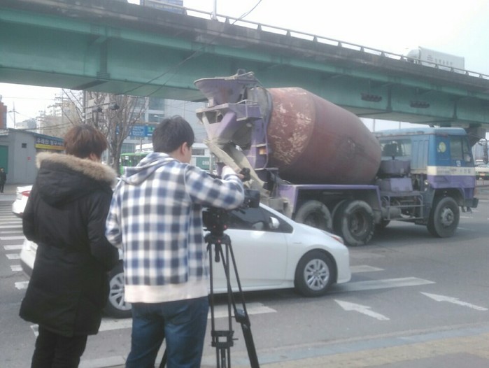 | ▲ 구 관계자가 경인고속도로 입구 교차로에서 비디오카메라를 이용해 매연 단속을 하고 있다. (사진제공=영등포구청) |