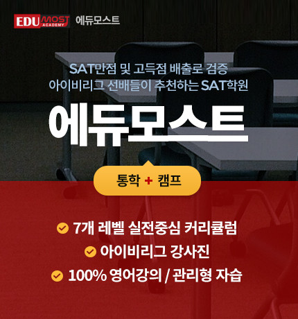 에듀모스트는 교육의 메카 강남 대치동에 위치했으며, 매년 SAT 과목별 만점자를 배출한 SAT학원으로 유명한 곳이다. 탁월한 결과를 만들어낼 수 있었던 비법은 학생 개인의 수준에 맞춰 세분화 된 레벨별 수업이 이뤄지기 때문이다.