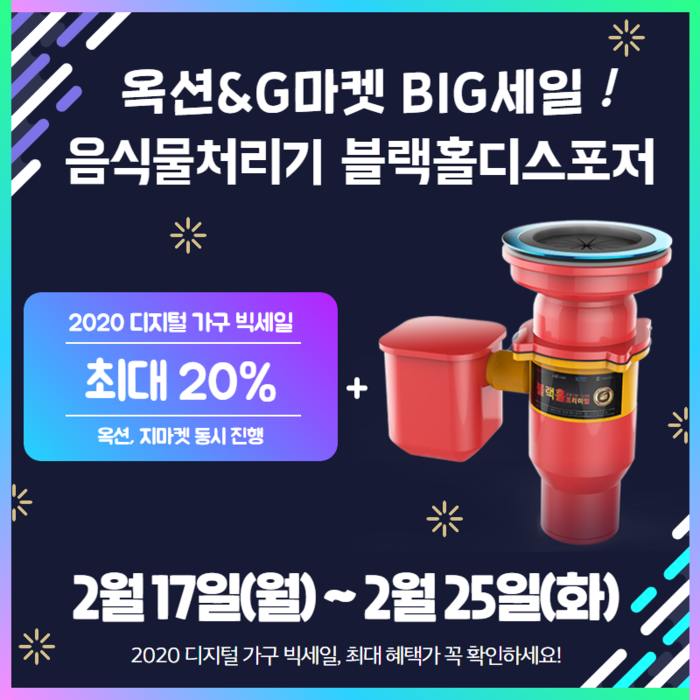 이어 “이러한 블랙홀디스포저 음식물처리기를 2월 17일부터 2월25일까지 옥션과 지마켓에서 진행하는 디지털 가구 빅세일을 통해 합리적인 가격에 만나볼 수 있으니 많은 참여 바란다”고 덧붙였다.
