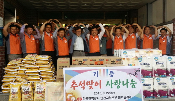 한전 인천본부 전력관리처는 상대적으로 소외감이 큰 지역내 생활이 어려운 취약계층들과 경로당 어르신들에게 명절의 따뜻한 정을 나누기 위해 쌀 400kg과 라면 80박스, 화장지40개, 생활용품 20세트를 후원, 임직원이 각 세대에 직접 전달했다.