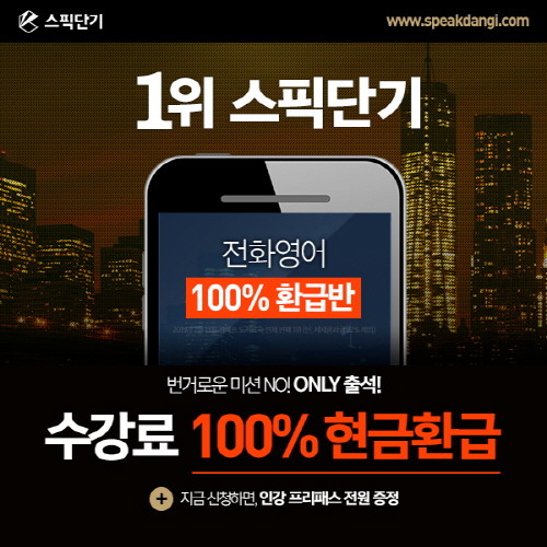 스픽단기 ‘전화영어 100% 환급반’ 수강 신청은 스픽단기 홈페이지(www.speakdangi.com)에서 가능하다.