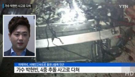 박현빈은 스케줄을 마치고 공개방송을 위해 이동중 4중 충돌사고로 인해 허벅지 골절을 입은 것.