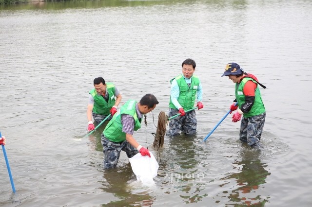 이날 참여자들은 30℃의 무더운 날씨에도 불구하고 중랑천에 모여 가슴장화를 입고 직접 물에 들어가서 쇠갈고리로 하천 바닥에 가라앉아 있는 폐타이어, 폐자재, 오물 등 쓰레기를 건져 올려 수거했으며, 중랑천 변에 산재돼 있는 무단투기 쓰레기도 대대적으로 수거했다.