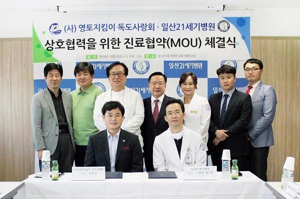 일산21세기병원 고광원 병원장은 “이번 협약을 통해 독도의 소중함을 알리는 활동에 앞장서고 있는 약 8,000여명의 독도사랑회 회원들의 척추·관절 건강을 위해 기본에 충실한 질 높은 의료서비스를 제공하여 척추·관절 주치의 역할로써 최선을 다 하겠고, (사)영토지킴이 독도사랑회와 상호협력관계를 잘 유지하며 앞으로도 지역사회를 위한 봉사활동을 꾸준히 이어가겠다.”고 밝혔다.