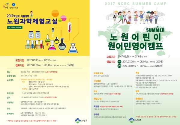 신청대상은 구에 거주하는 초등학교 4학년~중학교 3학년 학생이며, 7월3~12일 구청 홈페이지를 통해 참여자 150명을 선발하며, 선발 결과는 전산추첨 후 7월 24일에 발표한다. 교육비는 총 18만5000원이나 구가 절반인 50%를 지원해 참가자는 9만2500원만 지불하면 된다.