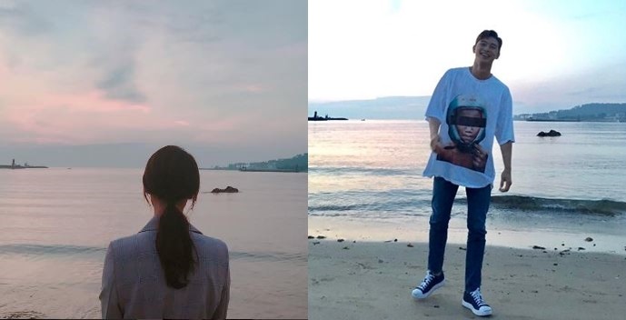 이와 함께 김지원 역시 자신의 인스타그램에 박서준과 같은 날 "바다니까 퐈(f)도?!!"라는 글과 함께 같은 장소에서 찍은 뒷모습을 공개해 눈길을 끌었다.