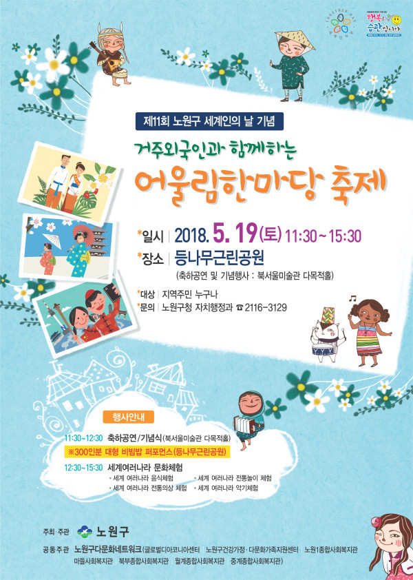 이외에도 2018년 노원교육복지재단 정책틈새네트워크 사업의 일환으로 다문화가족의 고국에 물품보내기 행사인 ‘고국에 사랑과 정 보내기’ 부스도 마련된다.
