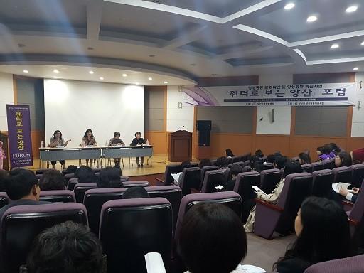 이날 포럼은, 김민서 양산시 여성가족과장과 최연화 아동.여성안전지역연대 공동위원장의 여성친화도시 현황 보고를 시작으로, 아영아 교수(신라대학교)를 좌장으로 김혜정 박사(부산여성가족개발원)의‘여성의 사회참여 활성화를 위한 공간조성 방안’이라는 주제발표와 지정토론을 거쳐‘모두가 행복한 여성친화도시 양산’에 대한 내용으로 종합토론 및 시민과의 질의응답 순으로 진행되었다.