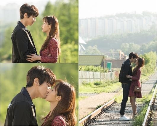 두 사람은 아무도 없는 간이역 철길 위에서 입을 맞추고 있다. 살짝 얼굴을 든 권유리와 그에 맞춰 고개를 숙인 김영광의 이상적인 키 차이가 설렘을 유발했다.