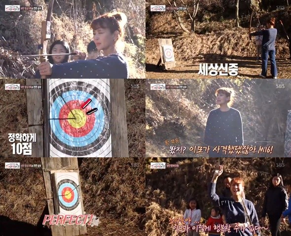 김원희는 자신감이 넘쳤다. 예전에 M16을 쏴봤다고 말하면서 조카들을 놀렸다. 김원희는 한방에 10점을 맞혔다. 이어 두 번째 화살도 9점에 꽂혔다.