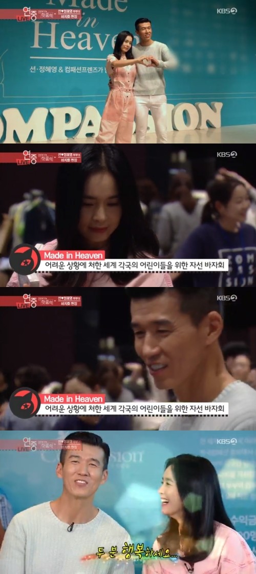 최근 방송된 KBS2 예능프로그램 '연예가중계'에서는 션-정혜영 부부의 바자회 인터뷰가 전파를 탔다.