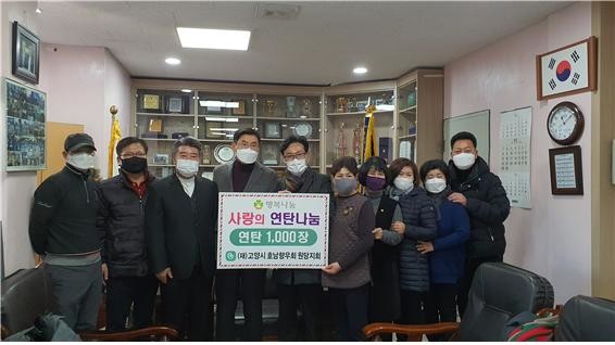 | ▲ 사진=고양시호남향우회 원당지회 한마음장학회(회장 이재선)에서는 4일 관내 취약계층에 “사랑의 연탄나눔” 기금을 전달했다 |