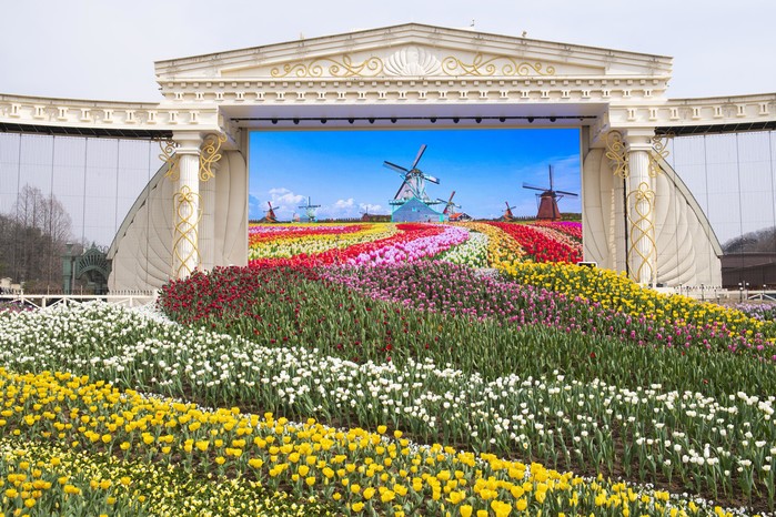 특히 매시 정각에는 네덜란드 현지의 튤립정원 영상이 약 10분간 상영되는데, 바로 앞 실제 화단을 마치 영상 속 튤립이 스크린을 뚫고 나와 이어지는 거처럼 보이게끔 조성해 가상(영상 속 튤립정원)과 현실(실제 튤립정원)이 하나가 되는 환상적인 'LED 인피니티 가든'을 연출한다.