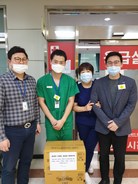 기부의 손길도 끊이지 않았다. 이재우 님 가족(일반 시민)이 보내주신 과자 452박스, 경기도자원봉사센터를 통해 기부받은 홍삼과 배도라지 건강음료와 건강식품, 의료용품을 선별진료소(10곳) 전달도 자원봉사자와 함께 했다.