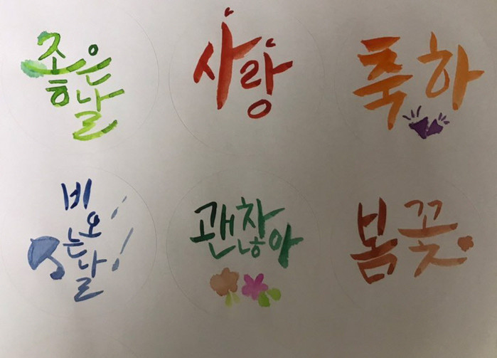 ▲ 1회기 캘리그라피 지도사 직무이해 특강 및 실시간 채팅 질의응답, 필압 등 기본 글씨쓰기, ▲ 2회기 워터브러쉬 등을 활용한 수채화 캘리그라피 스티커 만들기,
