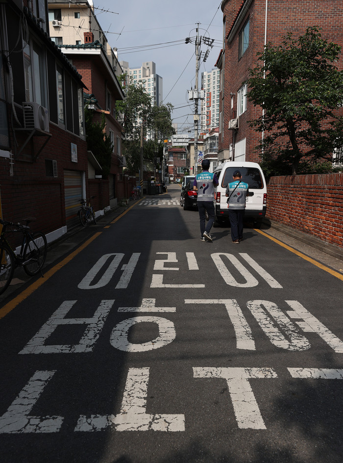 서울시 교통지도과 단속공무원들이 6일 오전 서울 강남구 일대 어린이보호구역 내 불법 주차를 단속하고 있다. 서울시는 등교 시간대와 하교 시간대에 집중적으로 어린이보호구역 내 불법 주·정차 단속을 벌이며 대당 8만원의 과태료를 부과하고 있다. 불법 주·정차 차량은 운전자의 시야를 막아 지나가는 어린이나 보행자를 제대로 볼 수 없도록 하기 때문에 어린이보호구역 내 교통사고의 주요 원인이 된다.