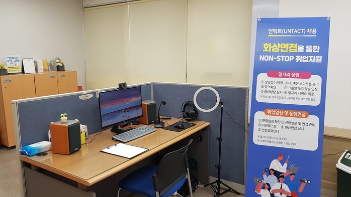우선 비대면 화상 면접을 통한 NON-STOP 취업 지원 서비스를 제공한다. 이를 위해 부산장애인일자리통합지원센터 내 화상면접 전용 공간을 설치해 장소와 이동에 제약 없이 장애인 일자리 상담을 비롯한 기업체 면접을 진행할 계획이다.