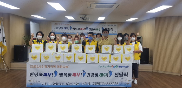 서울 양천구(구청장 김수영) 신월2동지역사회보장협의체 관계자들은 최근 신월2동 주민센터에서 반려 수중 동·식물(마리모와 블루벨벳새우)을 홀몸노인들에게 지원, 정서적 안정을 도모하는 프로젝트인 ‘안녕하새우!, 행복하새우!, 건강하새우!’ 전달식을 열었다.
