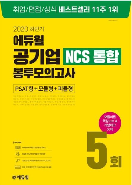 에듀윌에 따르면 ‘2020 하반기 에듀윌 공기업 NCS 통합 봉투모의고사 5회’ 수험서는 주요 공기업, 공사 공단 NCS 최신 출제 경향을 반영한 PSAT형 모의고사 2회, 모듈형 모의고사 2회, 피듈형 모의고사 1회로 구성됐다.