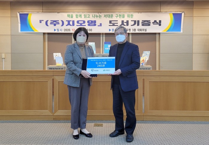 최근 구청 대회의실에서 열린 도서기증식에서 지오영 교육·홍보실 성희진 상무는 "구에 기증한 책을 주민 분들이 접하고 계시는 것에 보람을 느끼며 앞으로도 꾸준히 도서 기증을 이어가겠다"고 말했다.