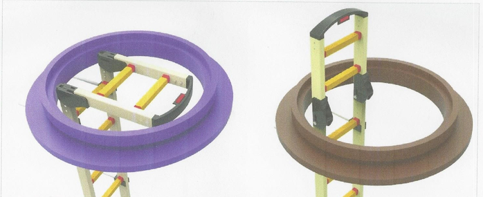 본 제품은 맨홀 뚜껑을 열고 사다리 상부구조를 펼쳐서 고정할 수 있고, 맨홀 뚜껑 유실시에도 90도로 접혀있는 상부구조가 안전구조물 역할을 할 수 있어 작업자는 물론 보행자나 차량 추락을 방지할 수 있다는 점에서 획기적 아이디어 상품으로 호평을 얻고 있다.