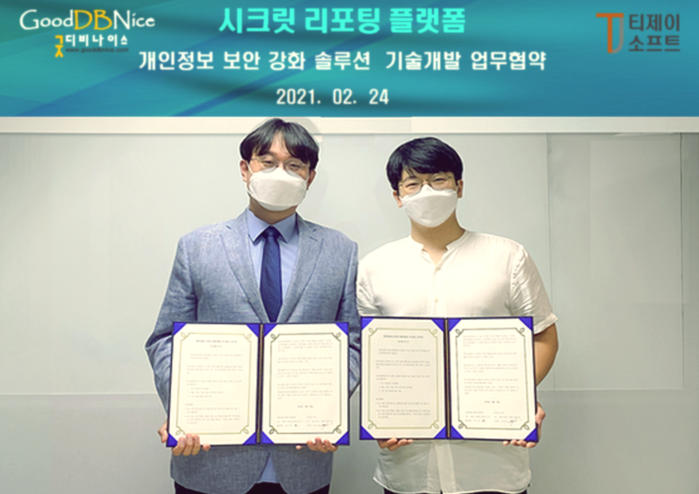빅데이터분석·SI(system integration) 전문기업 ‘굿디비나이스닷컴’(GoodDBNice)은 지난 24일 ‘티제이소프트’와 개인정보 보안 강화 솔루션 ‘시크릿 리포팅 플랫폼’ 개발을 위한 업무협약을 체결했다고 밝혔다.