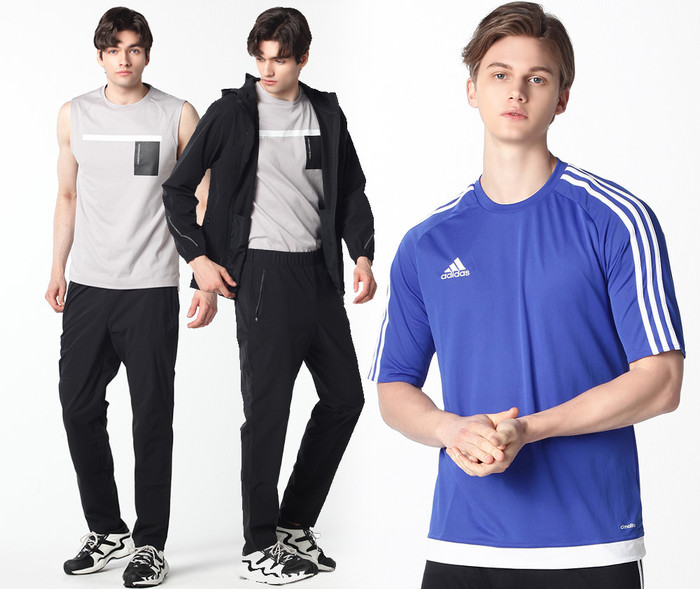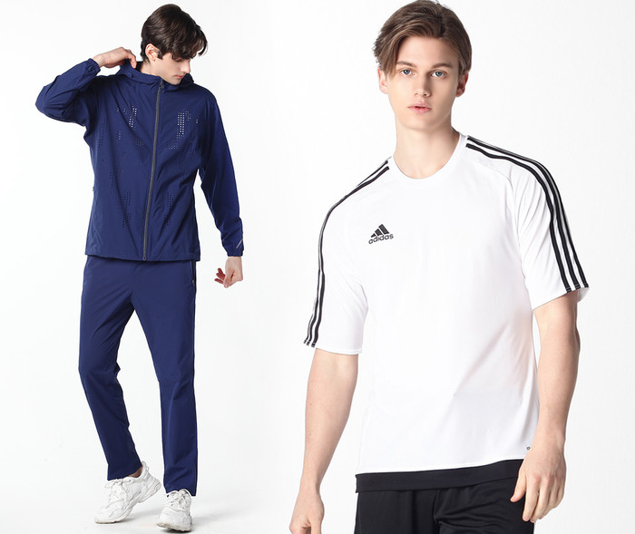 패션지오㈜가 준비한 스포츠 웨어 라인은 아디다스의 ‘축구 유니폼’으로 반팔 저지, 쇼트 팬츠 라인으로 구성되어 있다. 클라이마라이트 기능성 소재로 가볍고 쾌적한 착용감을 제공하며, 복원력이 탁월한 스트레치 소재로 자유로운 활동성이 특징이다.