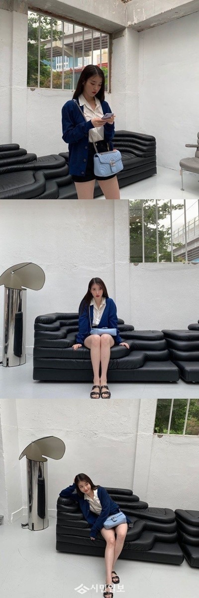 공개된 사진 속 아이유는 짧은 반바지에 흰색 블라우스, 파란색 카디건을 입고 물오른 미모와 함께 상큼발랄한 아우라를 과시해 팬심을 사로잡았다.