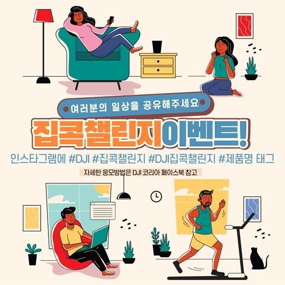 DJI에서 프로모션과 더불어 집콕 챌린지를 진행 중이며, 참가자들을 대상으로 추첨을 통해 DJI의 제품을 매주 제공한다.