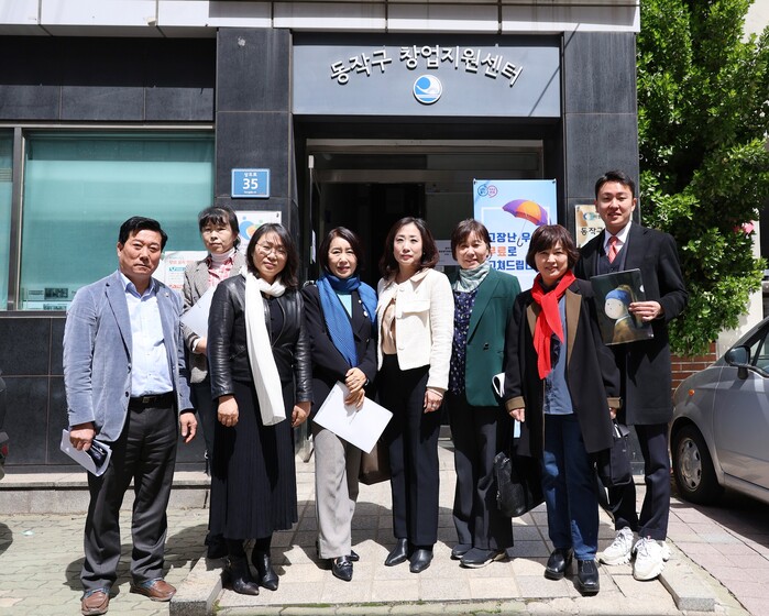 | ▲ 동작구 창업지원센터를 찾은 동작구의원들이 기념촬영을 하고 있다.(사진=동작구의회 제공) |