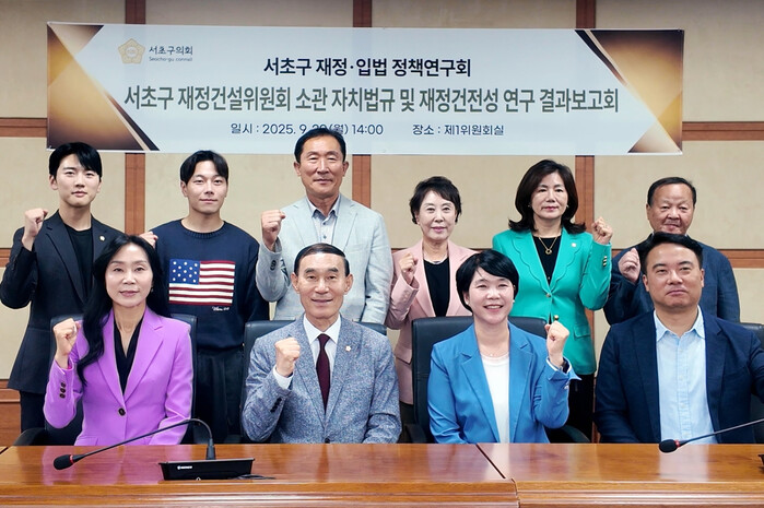 [시민일보 = 박소진 기자] 서울 서초구의회(의장 고선재) 의원연구단체인 ‘서초구 재정·입법 정책 연구회’와 ‘서초행복법제정비연구회’가 잇달아 연구용역 결과보고회를 개최하며 자치입법 품질 개선을 목표로 연구를 활발히 이어가고 있다.
