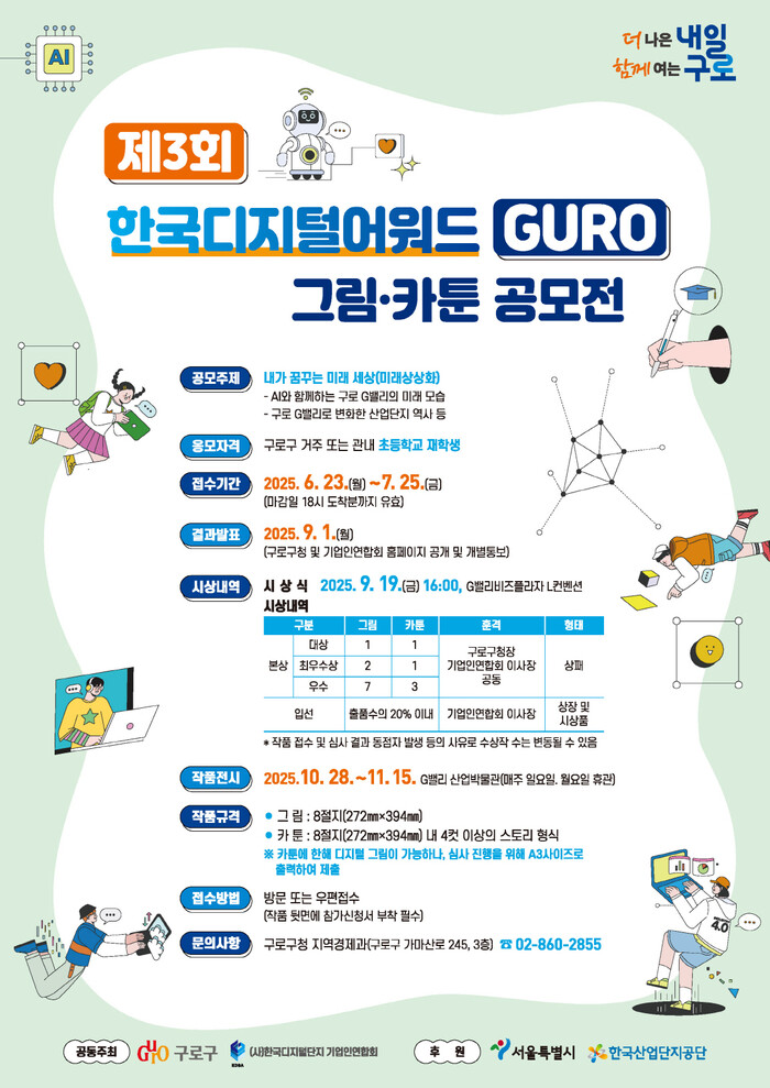 [시민일보 = 박소진 기자] 구로구(구청장 장인홍)가 23일부터 ‘제3회 한국디지털어워드 GURO’ 그림·카툰 공모전 참가자를 모집한다.