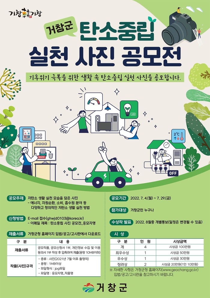 거창군은 전 군민을 대상으로 탄소중립 실천 사진 공모전을 오는 29일까지 개최한다.