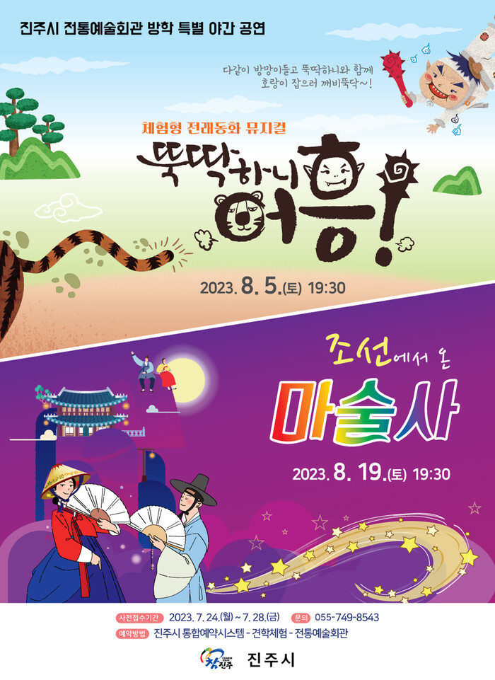 또한 조선시대를 주름잡던 진주의 재주꾼 한량 허선달과 교방 기녀 매향이 시간 여행을 통해 현재의 대한민국에 나타나 펼치게 되는 퓨전 전통 거리극 형태의 마술 공연 '조선에서 온 마술사'는 오는 8월 19일 저녁 7시 30분에 진행된다.