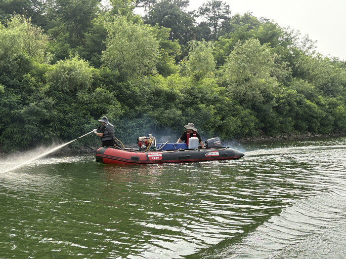 시는 지난 6월12일부터 이달 11일까지 한달 동안 총 3700㎏(응집제 3500㎏·살조제 200㎏)의 녹조제거제를 살포했다.