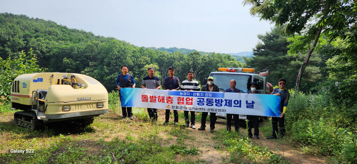 [인천=문찬식 기자] 인천 강화군(군수 박용철)은 지난 19일 돌발해충 피해 최소화를 위해 불은면 고능리 소재 장준감 과수원 인접 산림지역에서 농업기술센터, 산림공원과, 재배 농가의 협업으로 공동 방제를 실시했다.