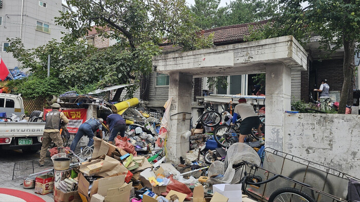 A씨 집에서는 폐자전거와 쓰레기가 2.5톤 트럭 6대 분량이 나왔으며, 그중 고철 2.5톤 트럭 1대, 폐의류와 폐지 1톤 트럭 1대 분량은 고물상에 판매됐다.