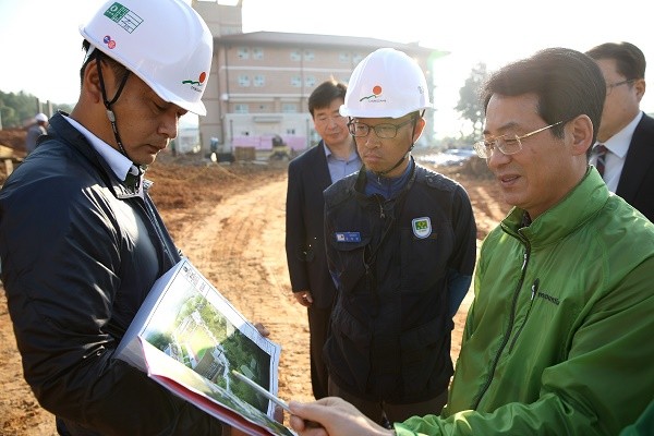 한편 오늘(18일) 강진원 군수는 거점고 공사가 한창인 작업현장을 직접 방문해 신축공사 추진상황을 점검하고 격려했다.