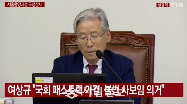 여상규 위원장은 지난 10월 7일 열린 서울중앙지검 등에 대한 국정감사에서 조국 법무장관 일가 의혹 관련 피의사실공표 사건과 국회 패스트트랙 관련 수사에 대해 “수사하지 말라”는 등의 발언을 했다.