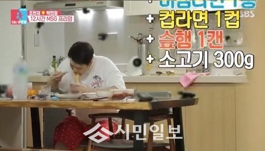 그렇게 짜장라면을 해치운 조현재는 아침 8시에 “개운한 걸로 하나 더 먹어야 겠다”며 비빔면에 소고기를 구워 육쌈비빔면을 만들어 먹었다. 박민정은 “어디 씨름대회 나가냐? 몸 키우니?”라고 일침 했다.