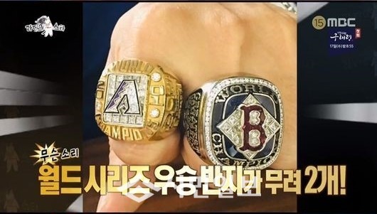 이날 김병현은 월드시리즈 우승반지를 잃어버렸다고 언급해 눈길을 끌었다. 김병현은 "처음에 두 개를 다 잃어버렸다가 차 트렁크에서 찾았다"며 "넉 달 전에 이사를 갔다. 하나는 찾고 하나는 잃어버렸다"고 말했다.