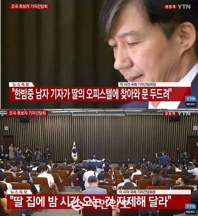 조국 후보자는 청문회 무산 소식이 전해진 직후인 지난 2일 오전, 취재진들을 통해 오후 3시30분부터 국회에서 기자회견을 열겠다고 예고해 대중들의 관심이 모아졌다.