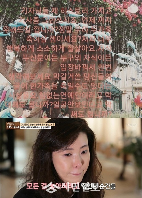 성현아는 "막갈겨쓴 당신들의 글이 한가족을 죽일수도 있다는 사실을요. 힘없는 연예인이라고 막 대해도 됩니까. 얼굴 안보인다고 막 써도 됩니까"라고 덧붙였다.