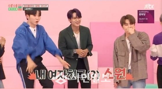 그러자 '예능 베테랑' 승관이 나섰다. 승관은 "우리의 위너 강승윤", "약속할 땐 백지헌", "눈사람 정승환" 등 멤버들에 맞춰 수식어를 붙이는 순발력을 발휘했다. 그러나 이때 위기가 찾아왔다. 바로 승관이 걸 그룹 여자친구의 멤버 소원을 "내 여자친구 소원"이라고 표현한 것.