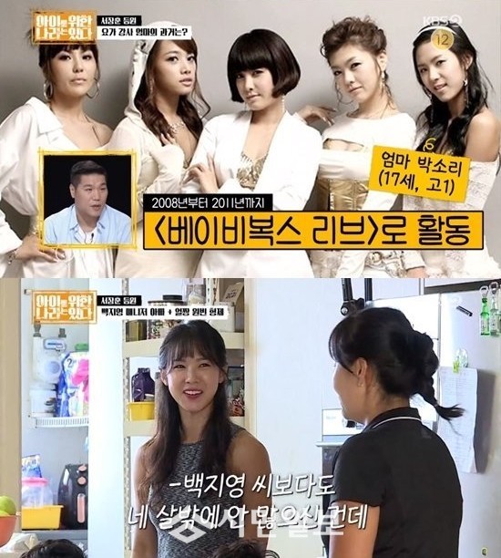 박소리의 직업은 요가 강사였다. 그는 "너무 어렸을때 아이를 낳고 키우다 보니까 지금 내 생활을 찾고 싶어졌다. 사실 중3때 강릉에서 연습생 한다고 서울에 와서 스무살 때까지 베이비복스리브로 활동했다. 금전적으로 정신적으로 많이 힘들었다. 지금도 조울중 우울증을 가지고 있다. 열 번 정도 정신과 상담 받았는데 너무 어린 나이에 자아가 생겨야 할 나이에 시키는 것만 했다고 하더라"고 털어놨다.