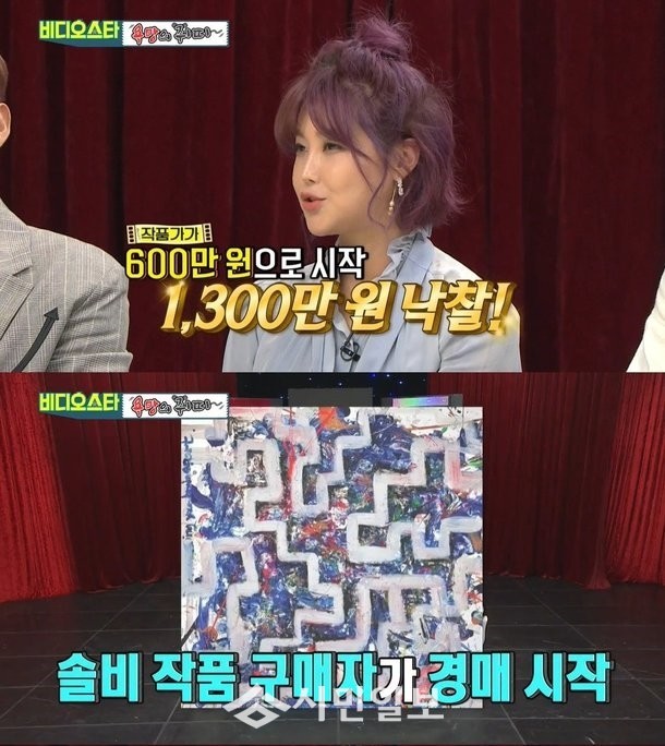이런 솔비의 이야기를 듣고 있던 박나래는 자신도 솔비의 작품을 가지고 있다며 "최근 솔비의 작품이 무려 소형차 한대 값에 팔렸다. 나는 이제 부자 됐다"라고 얘기해 웃음을 자아냈다.