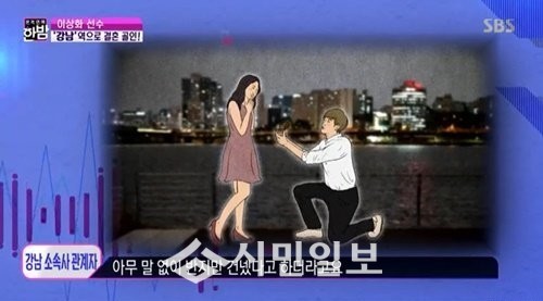 강남 소속사 측은 “강남 씨 말에 의하면 한강이 보이는 곳에서 아무 말 없이 반지를 건넸다고 하더라. 이상화 씨도 약간 눈물을 보였고 로맨틱한 분위기에서 진행됐다”고 말했다.