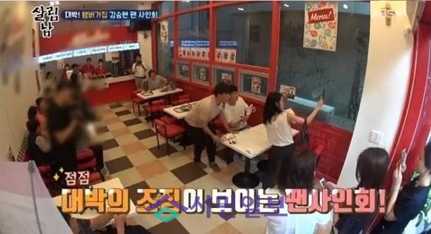 놀랍게도 가게 안에 팬들이 모여 있었다. 김승현을 놀라게 만들기 위한 팬들의 상황극에 가까웠다. 햄버거 관련 모델 격으로 사인회를 가진 김승현은 해사하고 밝은 미소로, 젊은 시절의 ‘훈남’ 면모를 과시해 훈훈함을 자아냈다.