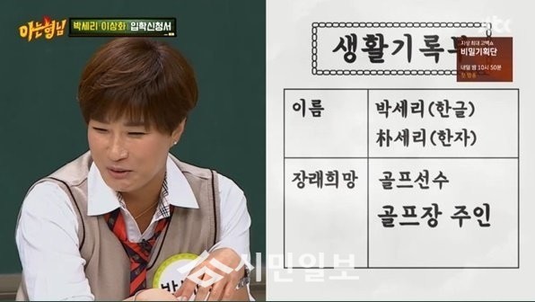 이날 박세리는 입학신청서 장래희망에 '골프장 주인'을 적어 모두를 웃게 만들었다. 박세리는 "어렸을 적 순수했을 때 꿈"이라며 멋쩍게 웃었다.