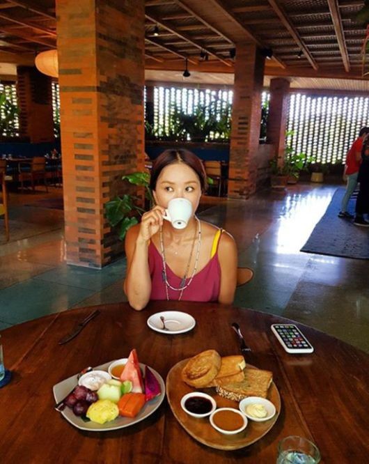 공개된 사진 속 엄정화는 레스토랑에서 브런치를 즐기고 있는 모습이다. 엄정화는 민소매 상의를 입고 늘씬한 자태를 뽐내고 있어 시선을 사로잡는다.